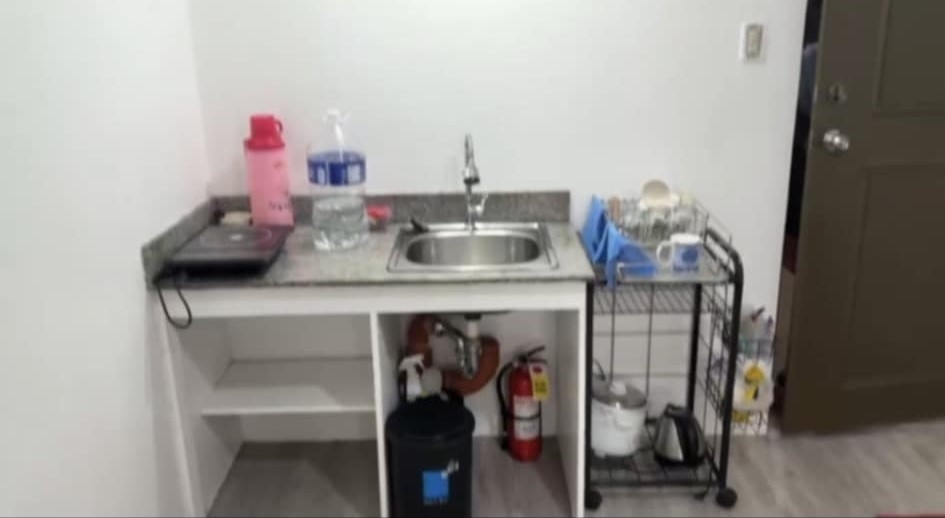 Studio Unit with Drying Cage on the rooftop. Floor Area: 30 sqm. Fully Furnished with washing machine, shower heater, dining and kitchen utensils, etc.Bunk bed can be replaced upon request