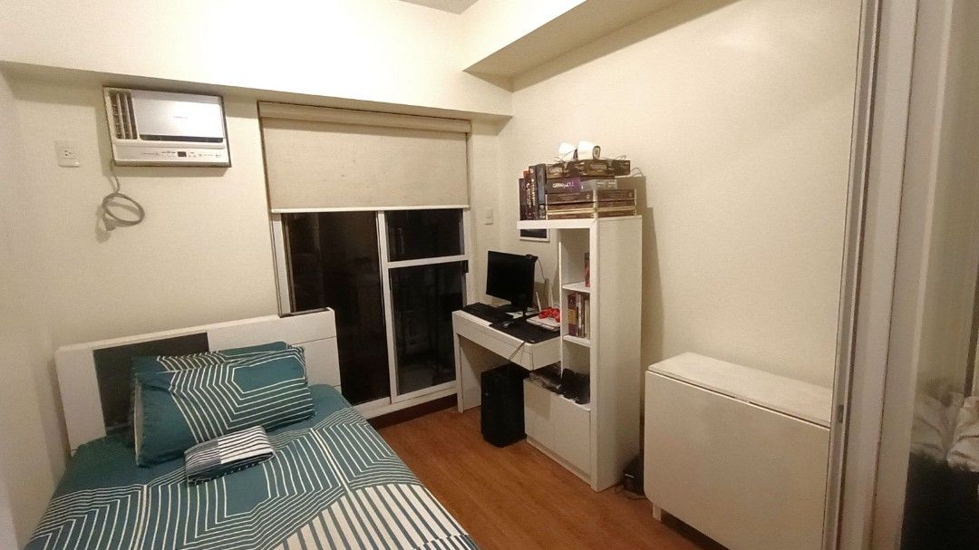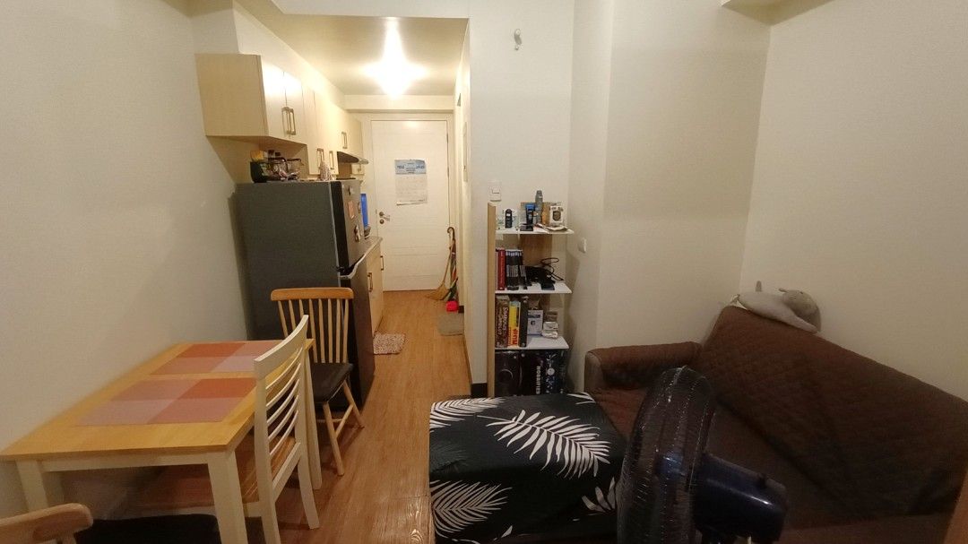 1 Bedroom with Balcony. Floor Area: 24 sqm. Semi Furnished with bed, computer table/work desk, sofa, dining table, refrigerator, range hood, aircon