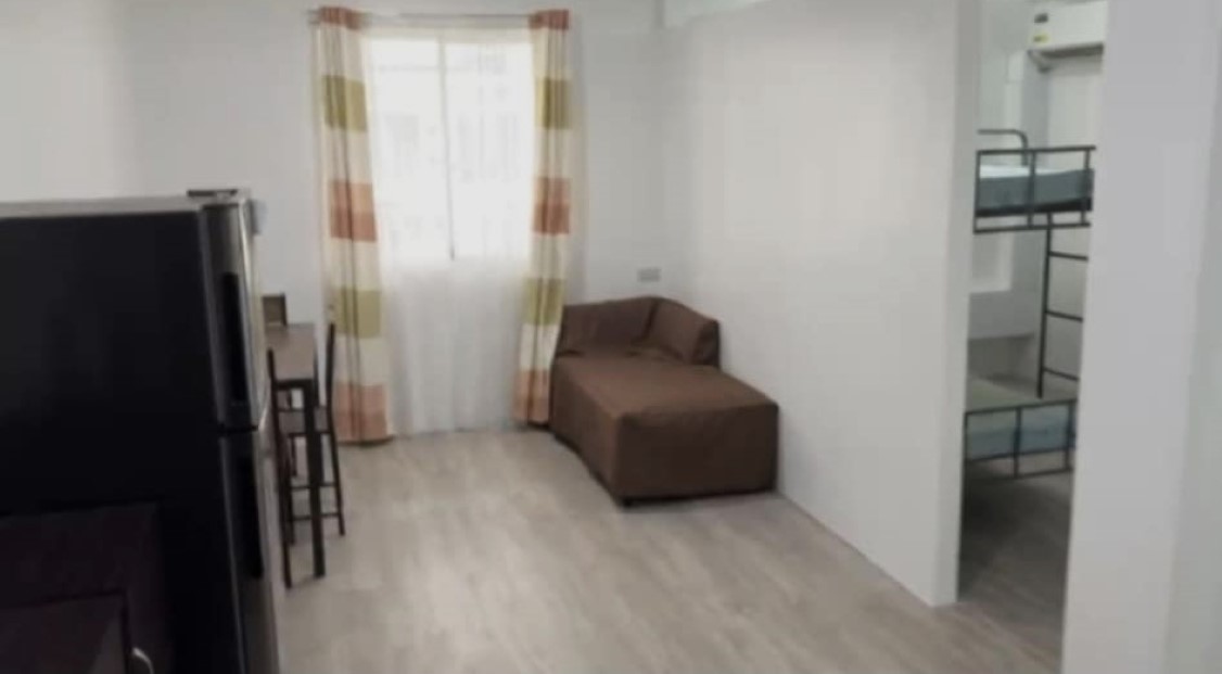 Studio Unit with Drying Cage on the rooftop. Floor Area: 30 sqm. Fully Furnished with washing machine, shower heater, dining and kitchen utensils, etc.Bunk bed can be replaced upon request