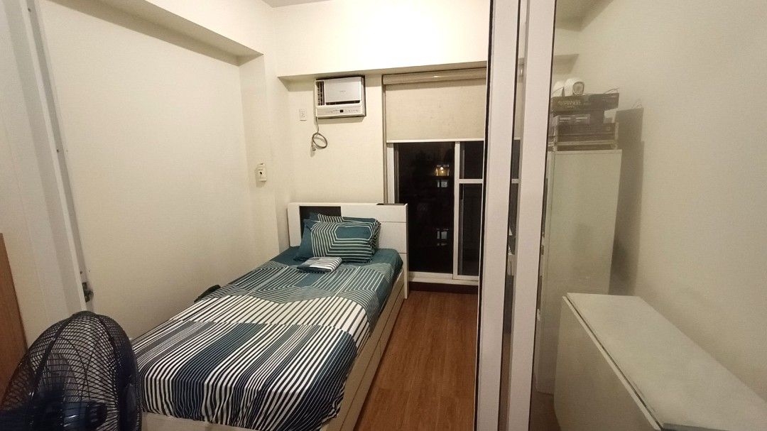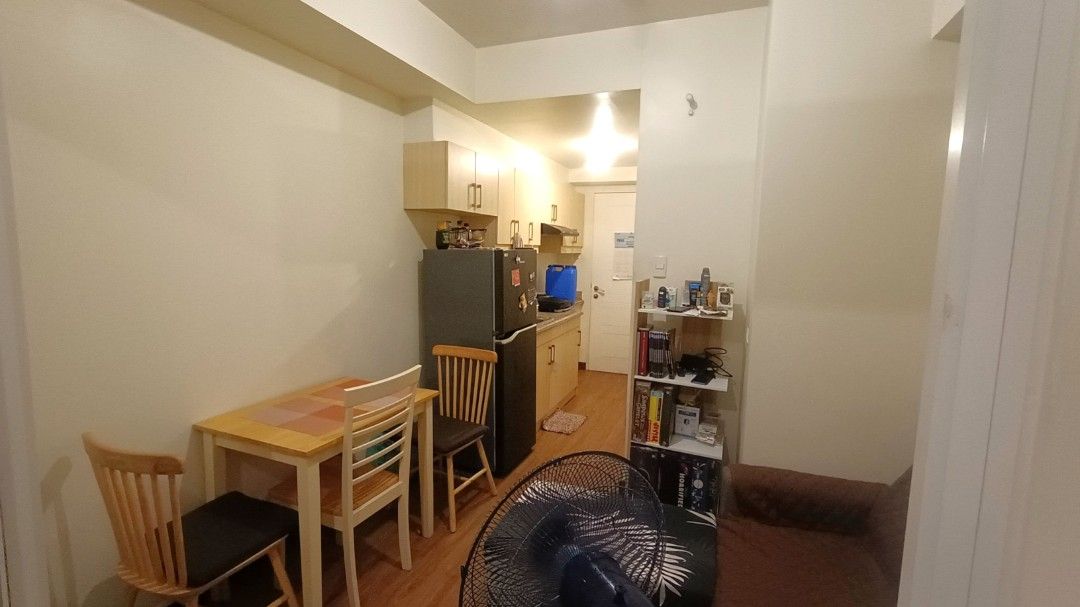 1 Bedroom with Balcony. Floor Area: 24 sqm. Semi Furnished with bed, computer table/work desk, sofa, dining table, refrigerator, range hood, aircon